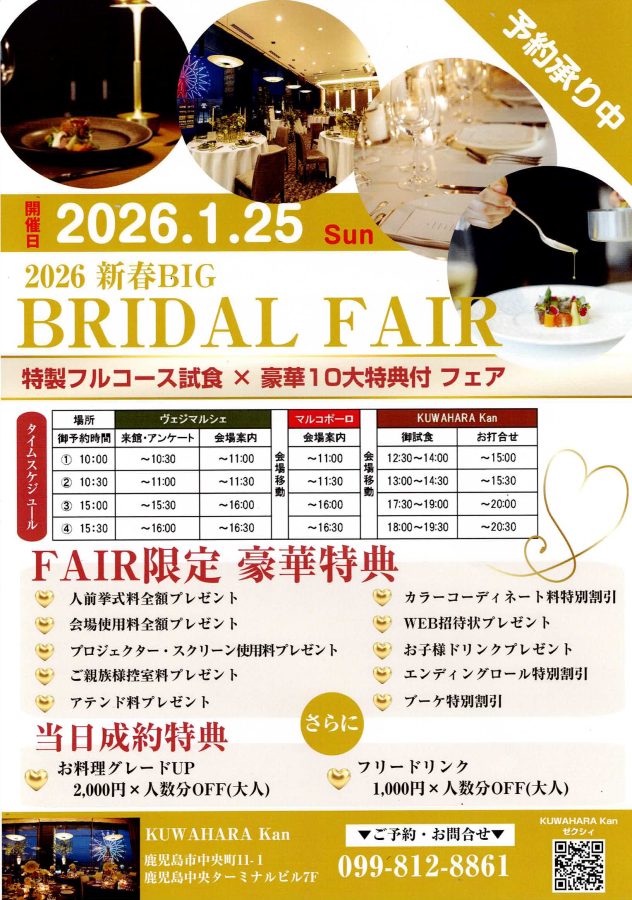 新春BIGブライダルフェアフェアを1月25日に開催♪
