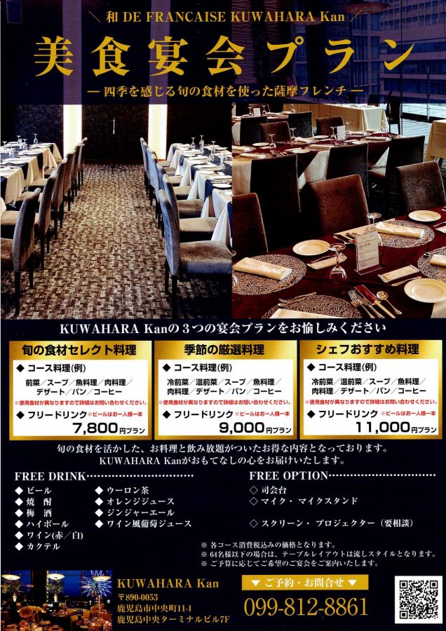 KUWAHARA Kanでは最大約120名様までの各種ご宴会を承っております。